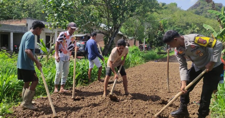 Bhabinkamtibmas bersama masyarakat bahu-membahu memperbaiki jalan desa agar dapat kembali dilalui dengan aman dan nyaman oleh warga. Gotong royong ini merupakan wujud kebersamaan dan sinergi antara Polri dan masyarakat dalam menjaga serta membangun lingkungan.