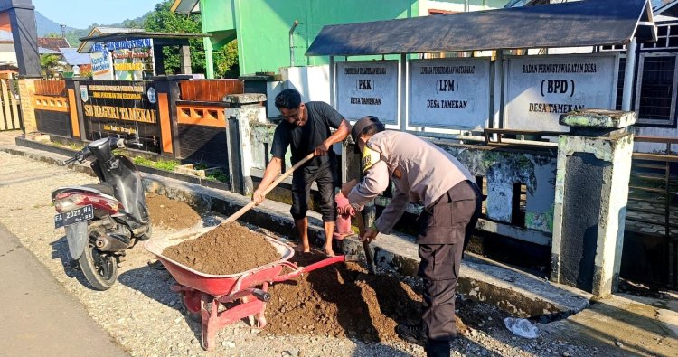 Sumbawa Barat, NTB – Dalam upaya menjaga kebersihan lingkungan serta mencegah terjadinya genangan air dan banjir di musim hujan, Bhabinkamtibmas Desa Tamekan, Brigpol Aditya Prayudha, melaksanakan kegiatan gotong royong bersama masyarakat Dusun Tamekan I, Desa Tamekan, Kecamatan Taliwang, pada Jumat (30/1/2026).