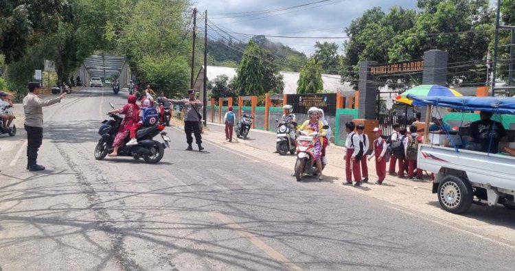 Kegiatan ini difokuskan pada pengaturan lalu lintas dan pengamanan aktivitas masyarakat, khususnya saat jam pulang sekolah. Personel kepolisian tampak membantu penyeberangan siswa, mengatur arus kendaraan, serta memberikan imbauan kepada para pengendara agar selalu Hati-hati dan mematuhi aturan lalu lintas.