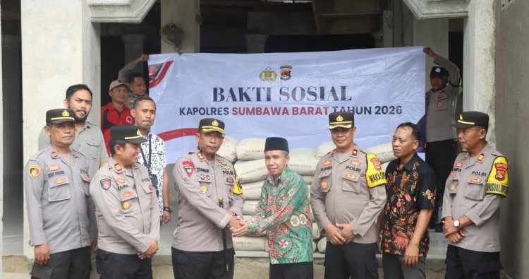 Sumbawa Barat NTB – Dalam rangka kegiatan sosial rutin Jum’at Berkah, Polres Sumbawa Barat kembali menunjukkan kepeduliannya terhadap sarana ibadah masyarakat dengan mendistribusikan sejumlah bantuan semen ke Masjid Nurul Gufron, Jumat (13/02/2026).