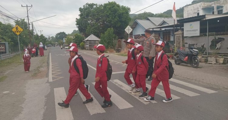 Sumbawa Barat NTB — Dalam rangka menjaga keselamatan para pelajar di pagi hari, personel Polsek Sekongkang Polres Sumbawa Barat melaksanakan kegiatan pengaturan lalu lintas dan penyebrangan anak sekolah di depan SDN 1 Sekongkang dan SMAN 1 Sekongkang wilayah Kecamatan Sekongkang kabupaten sumbawa Barat, Senin (27/10/2025).